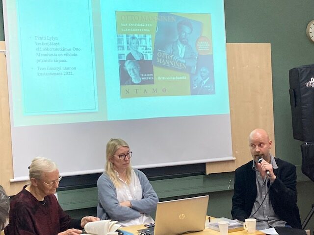 Lokakuun kulttuuri-illassa meillä oli ainutlaatuinen tilaisuus kuunnella kahden kirjallisuudentutkijan, dosentti Tellervo Krogeruksen ja dosentti Hanna Karhun innostavaa ja monipuolista esitelmää runoilijasta, suomentajasta ja kulttuurivaikuttajasta – Otto Mannisesta, jonka elämänkerran he olivat toimittaneet yliopistonlehtori Pentti Lylyn (1925–2004) työn pohjalta vuonna 2022.